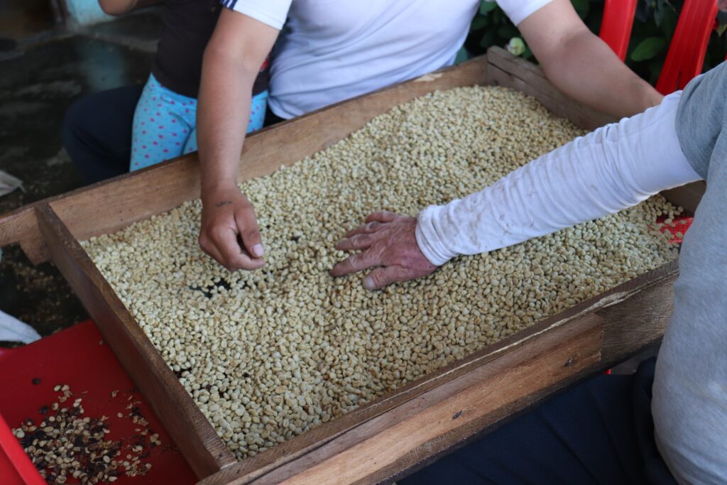At Renacer, Rubio cultivates 1,200 Pink Bourbon trees. Because his farm is small, he chooses to focus on producing high-end, high-quality coffees. To achieve this, Rubio and his wife, Maria Fany, handle all of the picking and processing themselves, allowing them to maintain careful attention to detail at every step. They harvest only ripe cherries, let them rest overnight, depulp them the next morning, and ferment the coffee for 32 hours. After a light wash to remove floaters, the coffee is dried slowly on raised beds.